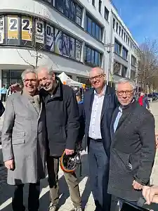 2016 hatte sich der Beirat Gröpelingen bereits dafür ausgesprochen, den bisher unbenannten, aber im Stadtteil als Ohlenhofplatz bezeichneten Platz in Bürgermeister-Koschnick-Platz zu benennen. Bei wunderbaren sonnigen Wetter, unter Balkan-Beat-Klängen und mit vielen Gästen aus Gröpelingen und umzu konnte das Ereignis am 17.03.2023 gefeiert werden. Auf Einladung des Bürgermeisters, Dr. Andreas Bovenschulte, und seiner Stellvertreterin, Dr. Maike Schaefer, konnten die Altbürgermeister Dr. Scherf, Herr Wedemeier und Dr. Sieling sowie der Bürgerschaftspräsident Herr Imhoff, Abgeordnete und Wegbegleiter:innen von Bürgermeister Koschnick begrüßt werden. Nach der feierlichen Enthüllung des Platzschildes trafen sich die Gäste im Nachbarschaftshaus Helene Kaisen zur Kaffeetafel, zu der der Beirat Gröpelingen und die Senatskanzlei eingeladen haben.